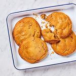 freshly baked brown butter caramel cookie with biscoff & white chocolate chunks
